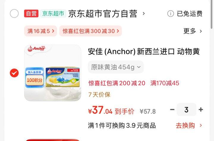 37.04/件,安佳到手111.12