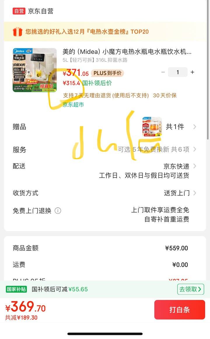 美的饮水机丨295.3