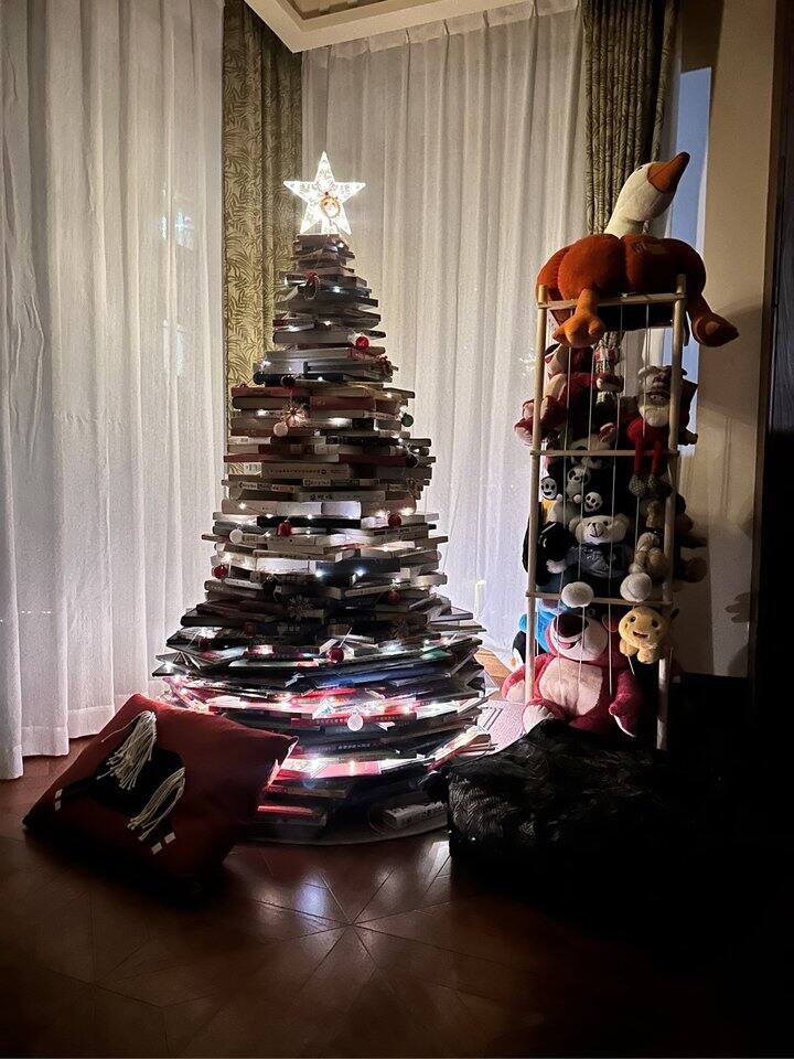 把小朋友不看的绘本和大人的书整理了一下,搭了一棵圣诞树,低成本制造仪式感,希望小朋友长大以后回忆童年更多是快乐和惊喜。