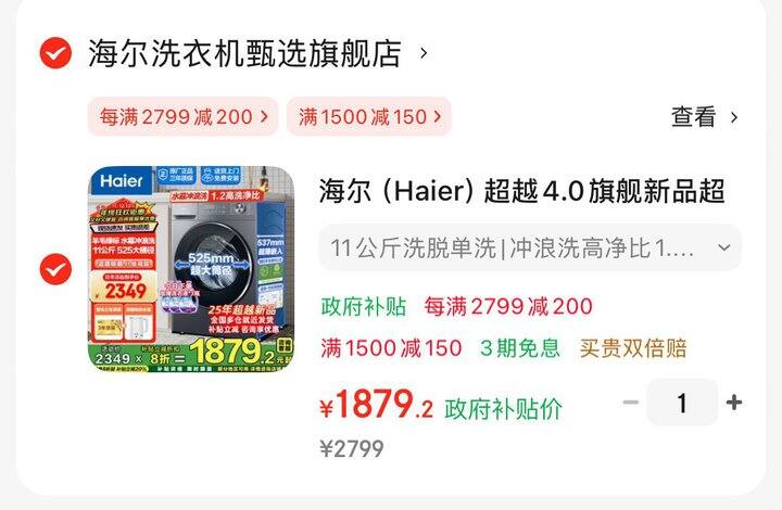 海尔超薄滚筒洗衣机,叠首单,国补💰1879‼️