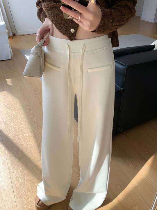 白色加绒阔腿裤女2025冬季高腰宽松卫裤百搭拖地裤休闲显瘦运动裤