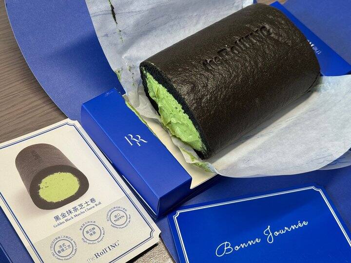 亲亲带回来的很火的瑞士卷 黑金抹茶 好吃