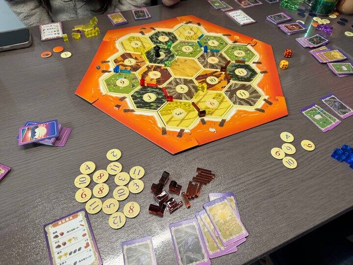 晚上一起玩卡坦岛 第一次玩 初学有点慢 越晚越上头 一把两小时
