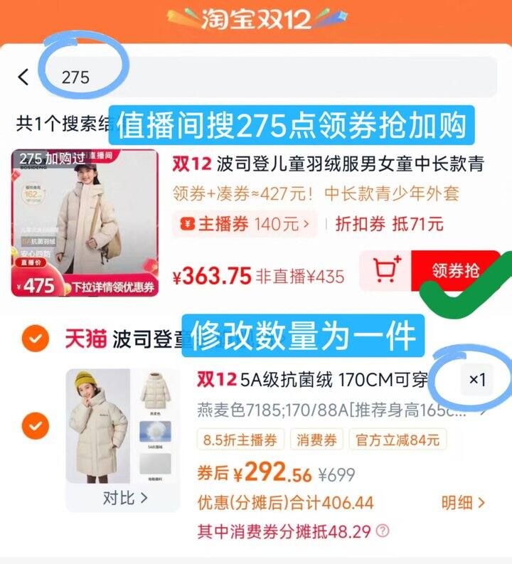 🛍️搜索🔍波司登找到这款,加购1件