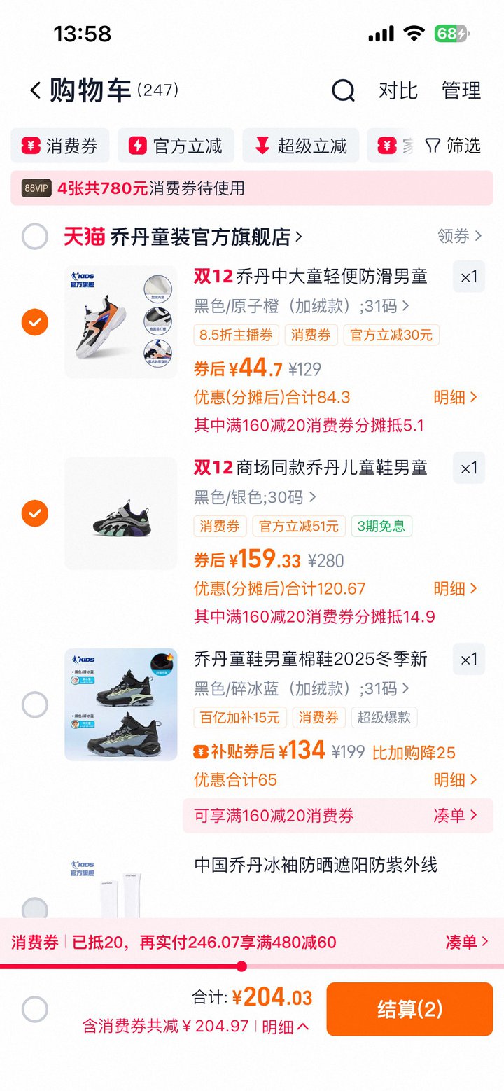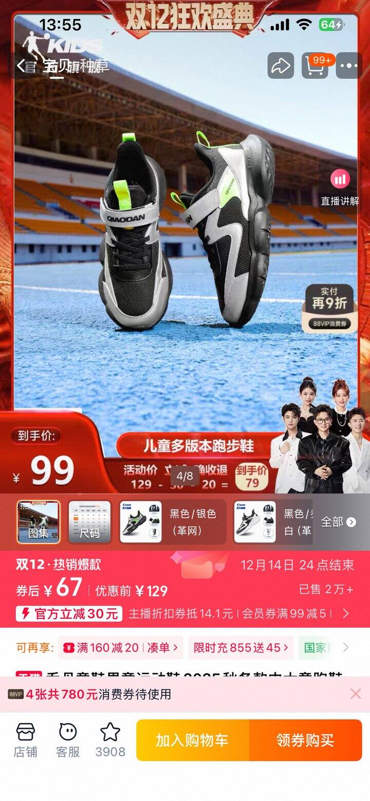 ❹ 乔丹加绒运动鞋,从淘金币加购抵扣3元