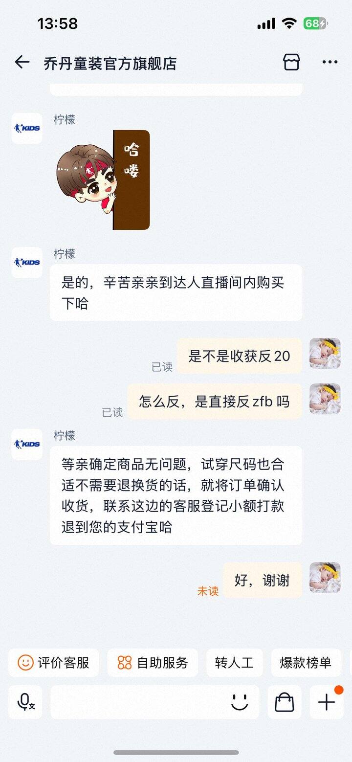收货没问题找客服登记退20到zfb ,