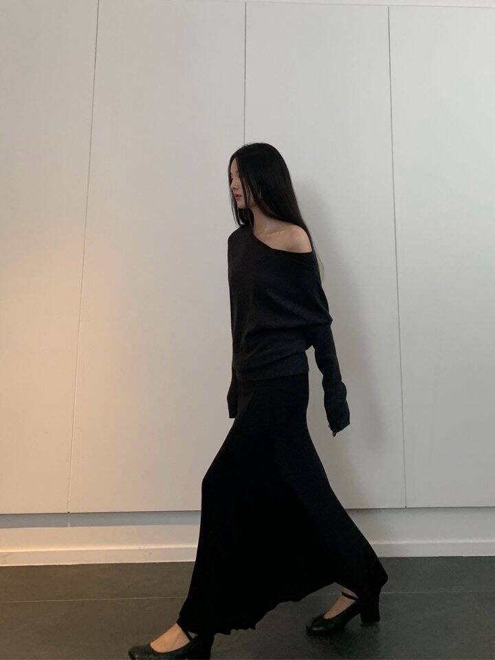 斜肩毛衣当然也能一键“遮胯显腰”