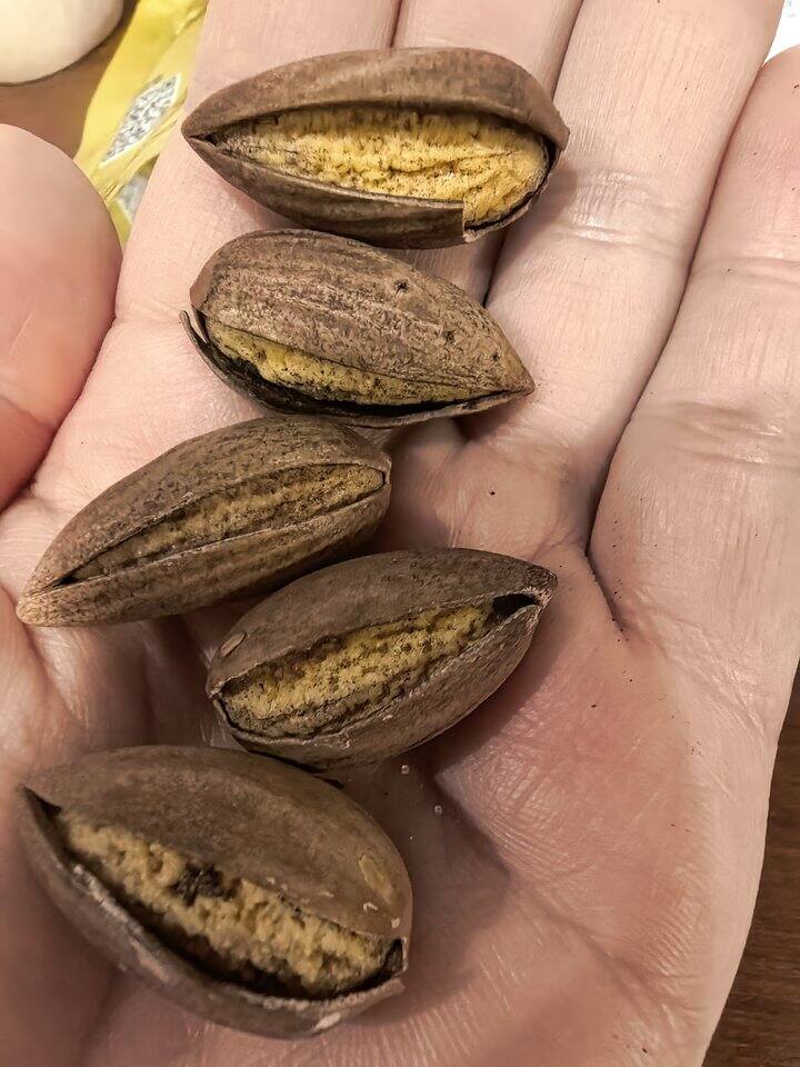 很久没吃香榧,主要是觉得太难剥了,而且我们这里也不产这个东西。结果昨天我老公从公司带了两包给我吃,居然是开口的,并且里面也没什么黑黑的,剥开直接就能吃了。但是上网搜了一圈没看到同款[胖鹿捂脸]