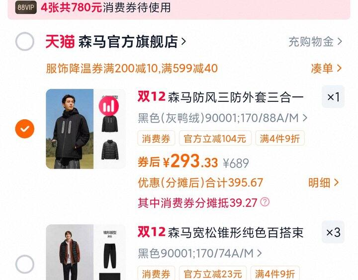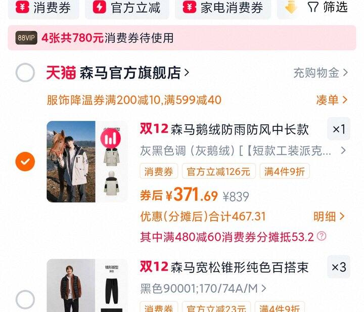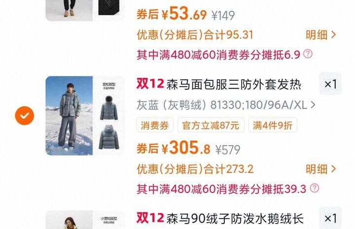 1、森马羽绒服男宽松连帽面包服亮面潮流三防外套发热保暖25新款冬装https://m.tb.cn/h.71gbJCs弹83.9礼金