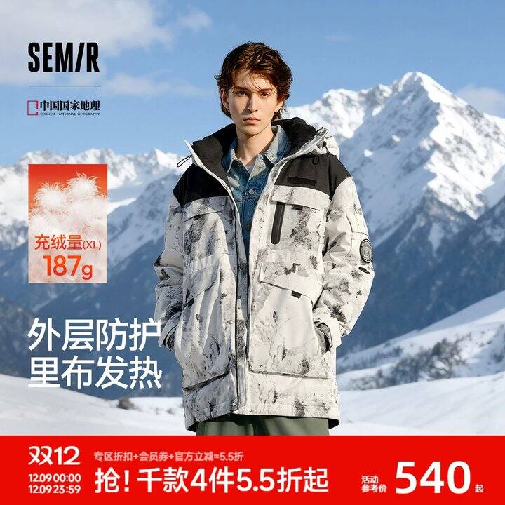 1、鹅绒森马中国国家地理系列羽绒服男冬90绒子防雨防风发热外套https://m.tb.cn/h.7Y8qH0y弹125.8礼金