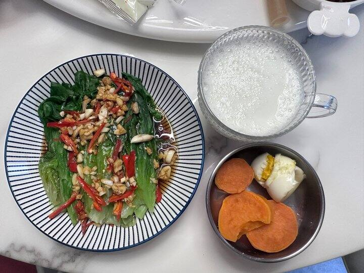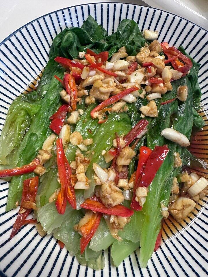 今早我婆婆做的生菜卖相好好啊,还很好吃