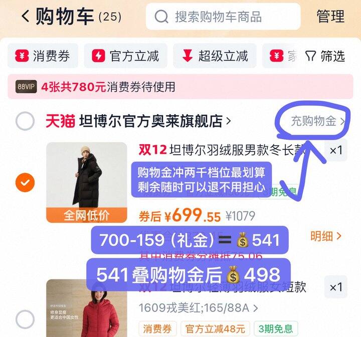 1️⃣领下方自己需要款式的礼金,领了之后去淘金币页面加购