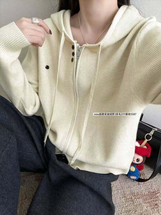 ZIYI紫依5587冬季新款韩版时尚百搭连帽长袖针织开衫女宽松毛衣