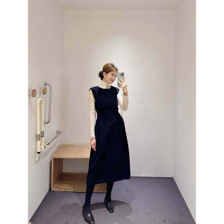 专柜款25冬季新款气质圆领羊毛混纺中长款收腰连衣裙显瘦毛呢裙子