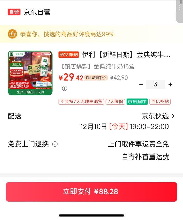 金典纯牛奶丨1.83/盒
