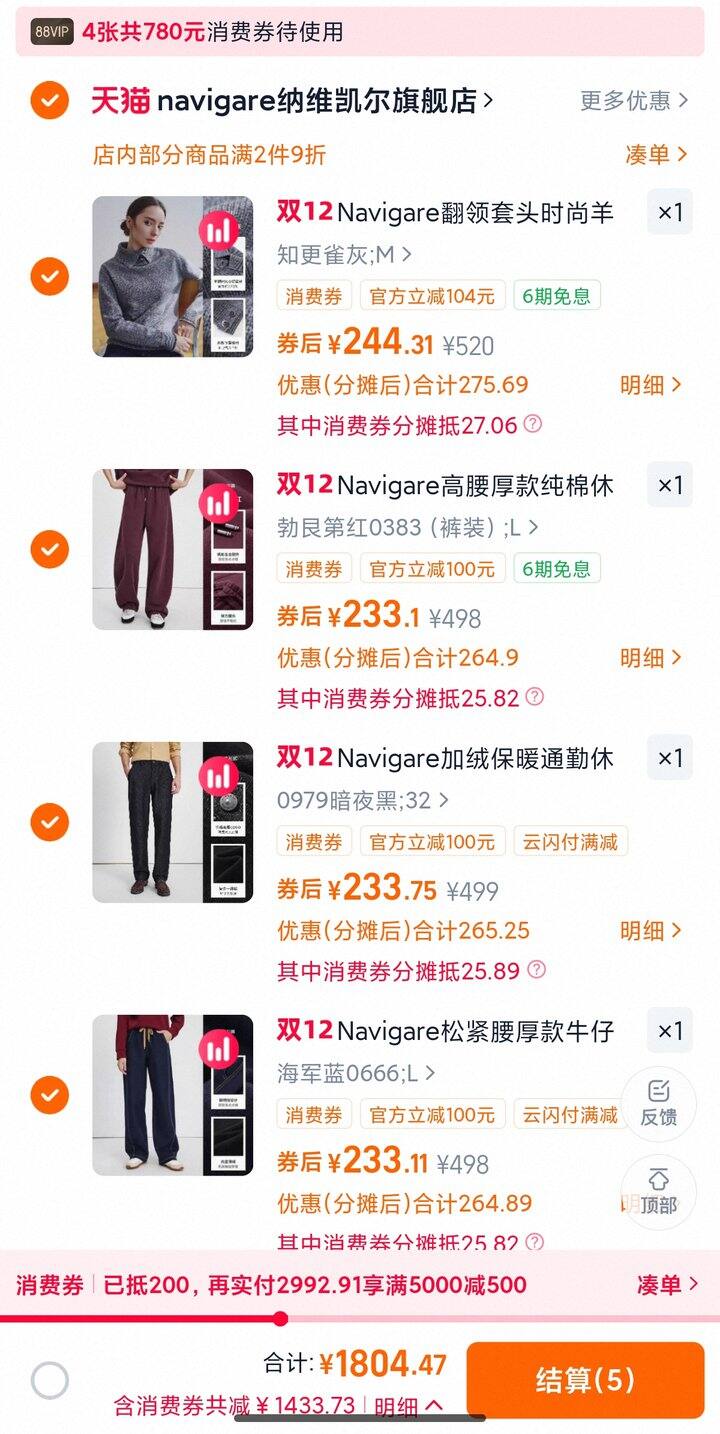 5、意大利小帆船加厚磨毛休闲裤女2025秋冬新款黑色女弯刀裤https://m.tb.cn/h.710KP8V弹83.8礼金