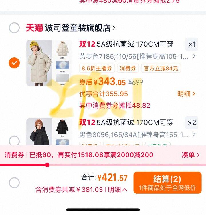 陈都灵同款森马羽绒服到手147.3!!!
