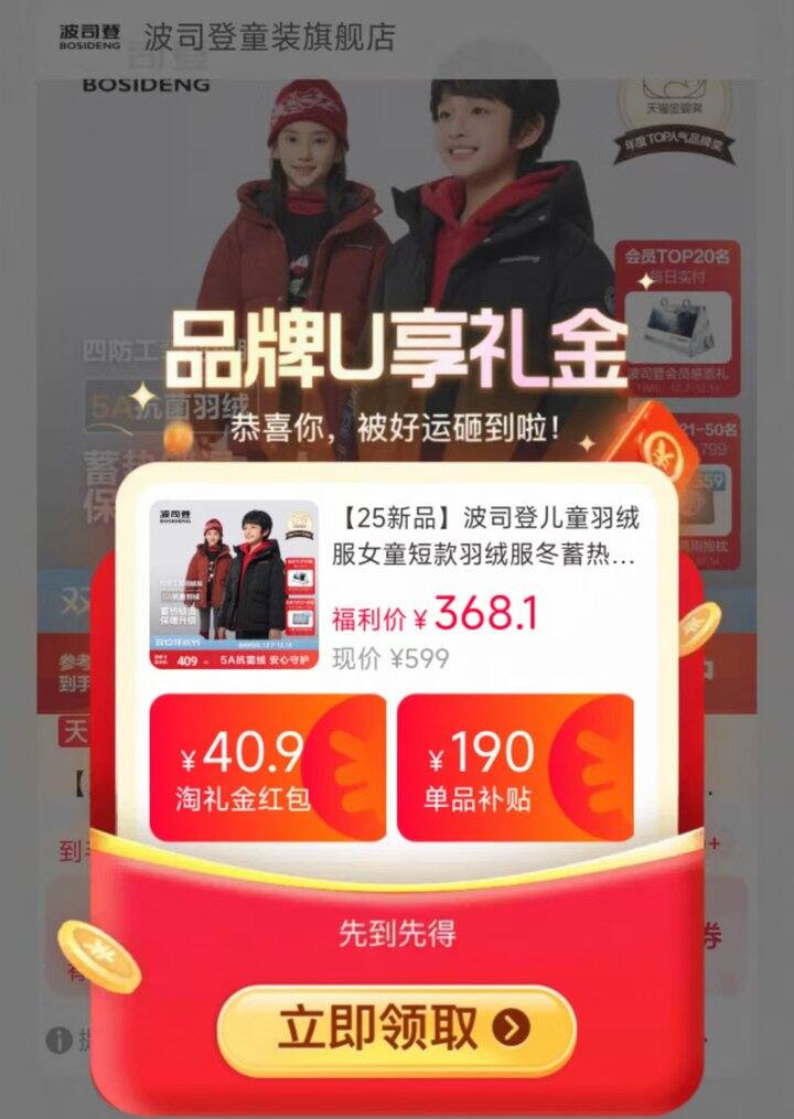 ❸速‼波司登儿童四防工装羽绒服