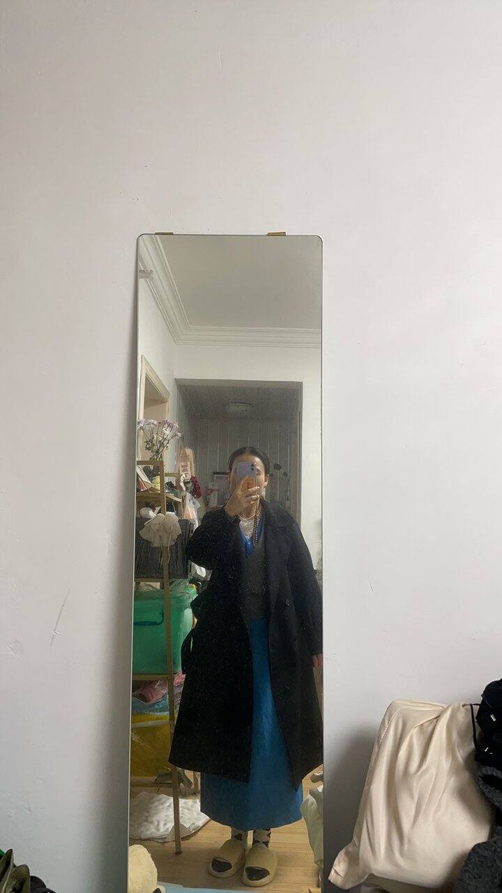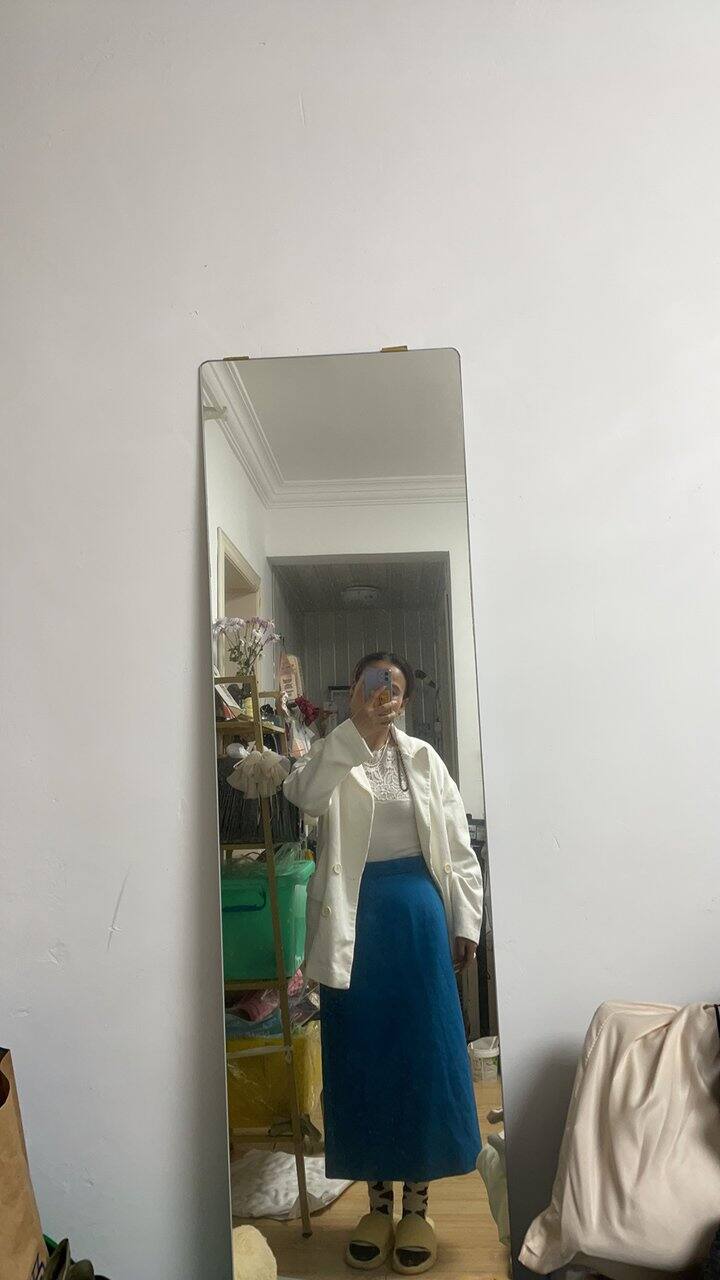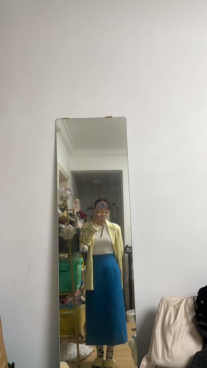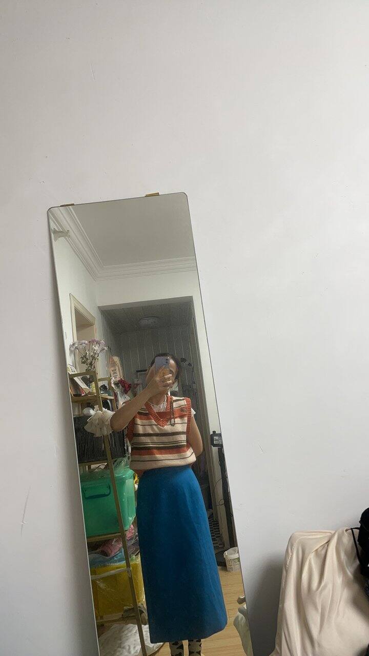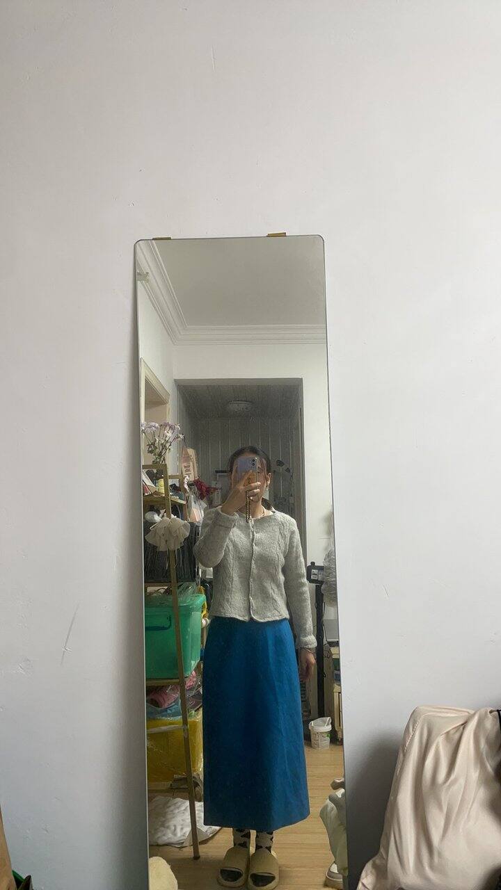 周末逛街,跟闺蜜一起,买了个孔雀蓝的半裙,颜色饱和度特别好,很好看,从没尝试过这种颜色,买来搭配试试,回去搭配了好几套