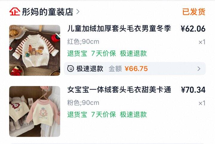 1.宝宝毛衣,可厚实,质量不错,买了两件,留了一件
