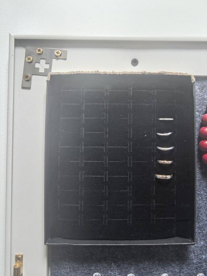 这里有个很失误的地方,镜柜两个边框不是完全重合的,导致戒指盒上边缘顶着门的边框,不是特别好扣上,所以我切下去一些。