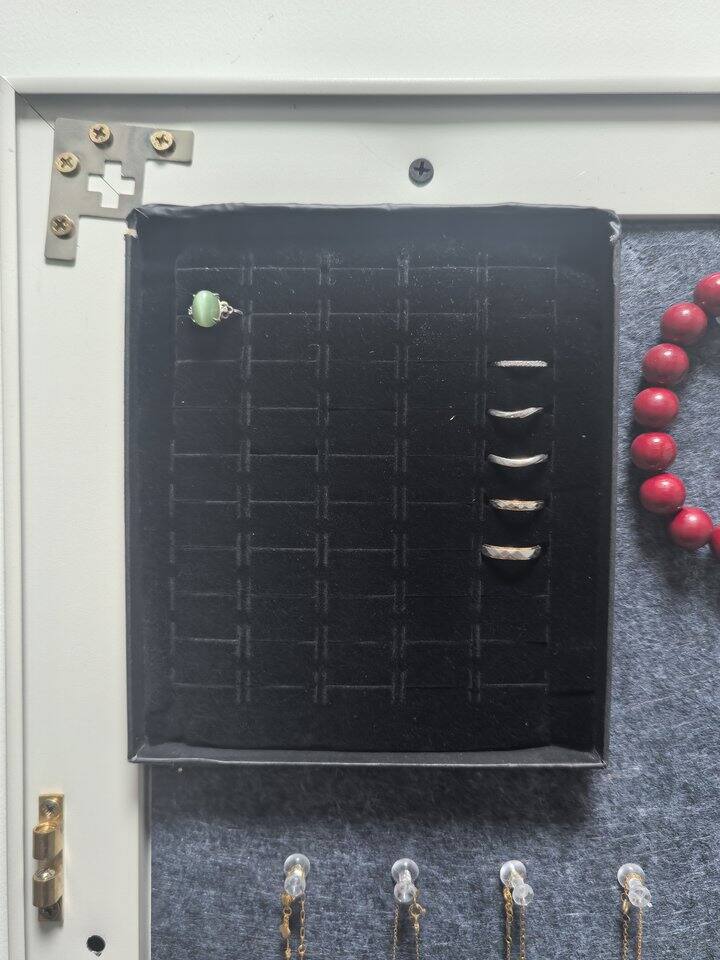 老房子买的成品镜柜,可以放香水,化妆品,对我来说没什么用处,我只想简单的挂点首饰。