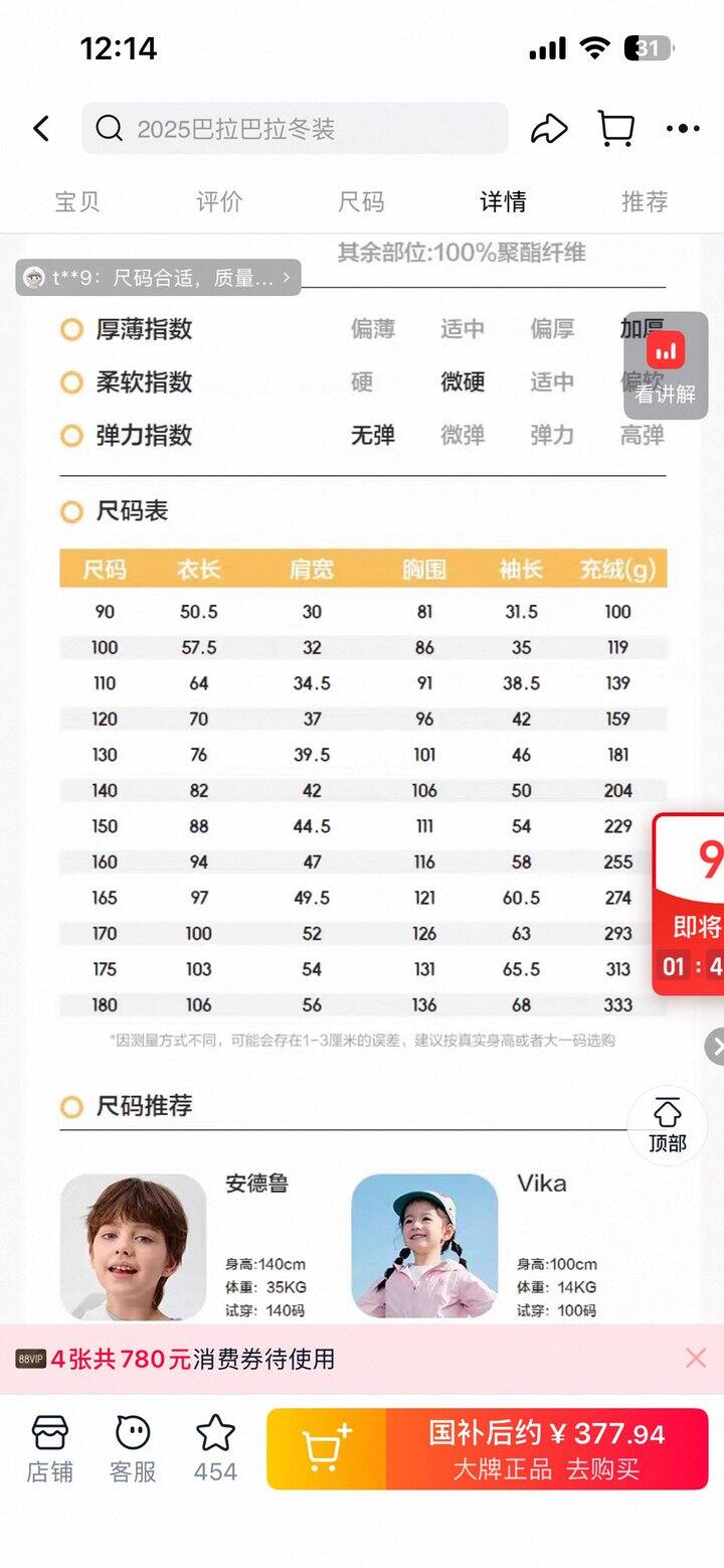 ❹ 巴拉巴拉儿童三防加厚羽绒服