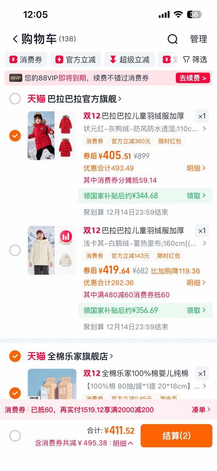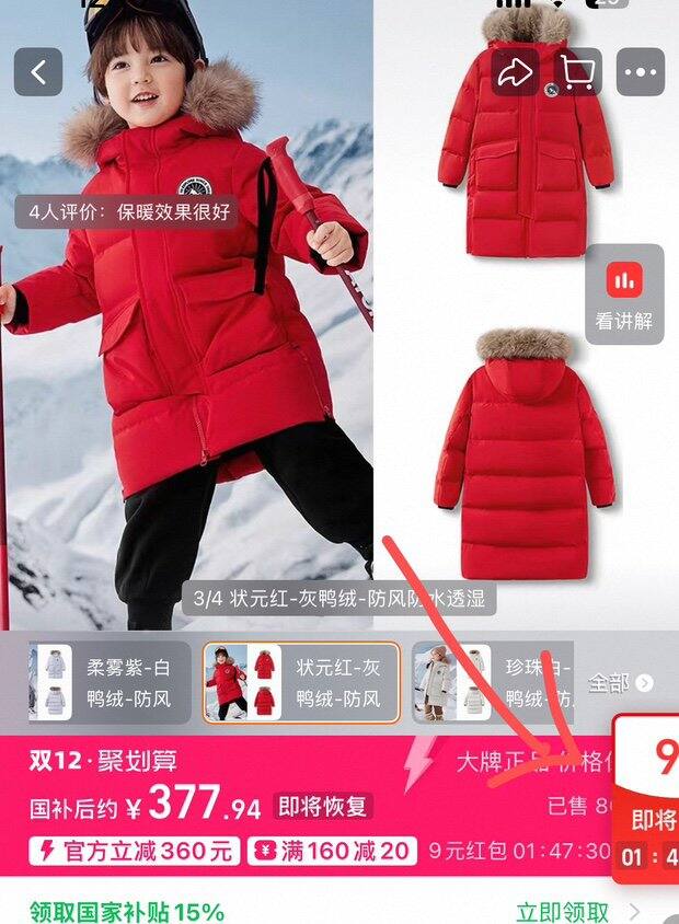 再把购物车里羽绒服的数量从2件改成1件❗️