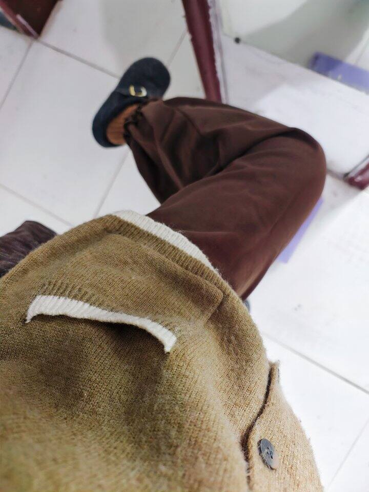 裤子79买的,挺厚实的,时候春秋,初冬穿不行,因为裤腿太宽不穿秋裤风搜搜的[大哭]
