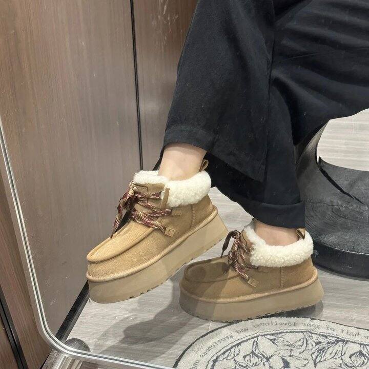 桑坡U家GG系带雪地靴芙卡拉顶版带标真皮现货加厚时尚雪地靴,135元