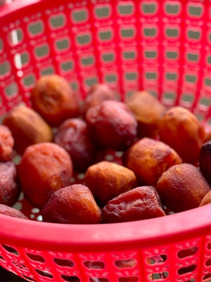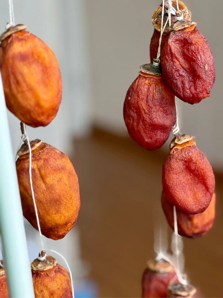 大部分晒成了柿子干,冷冻着,剩下的试着拿来做面点。