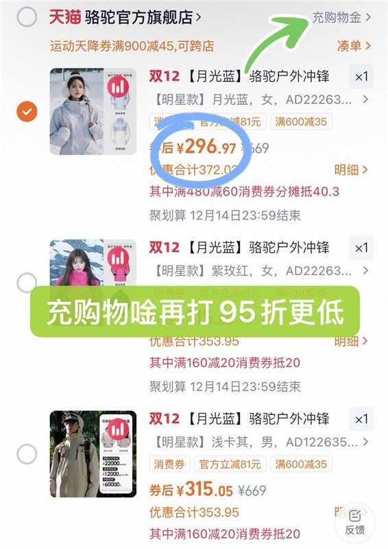 充购物金更低