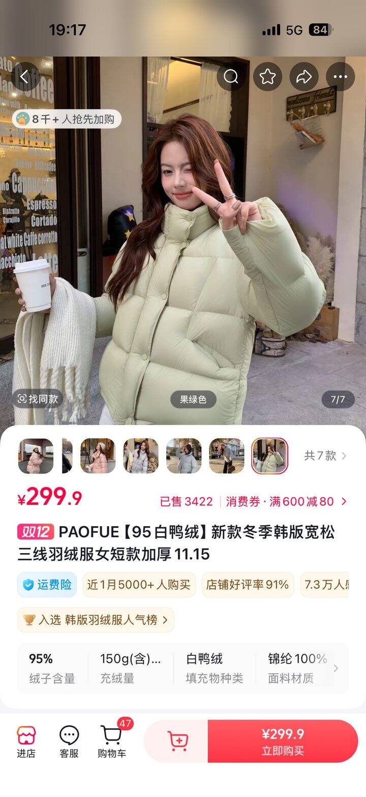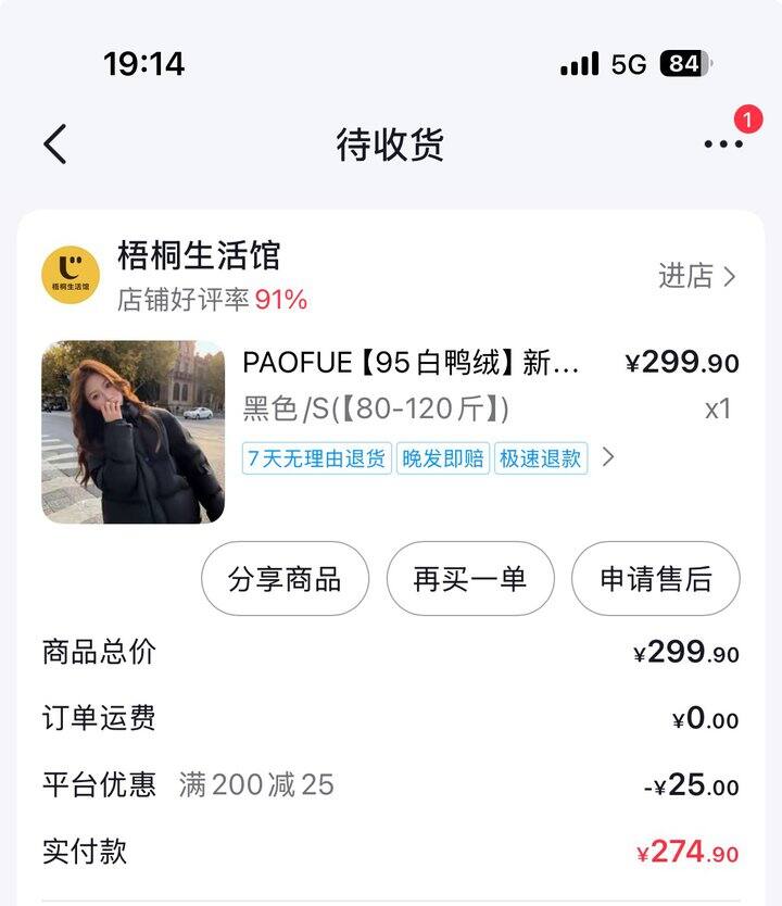 2.抖音买的黑色羽绒服。加上平台送的券还是很便宜,之前小树家卖的面包服很满意,后来没卖了。这个款式耐脏又不过时,搭配点小配饰吧。