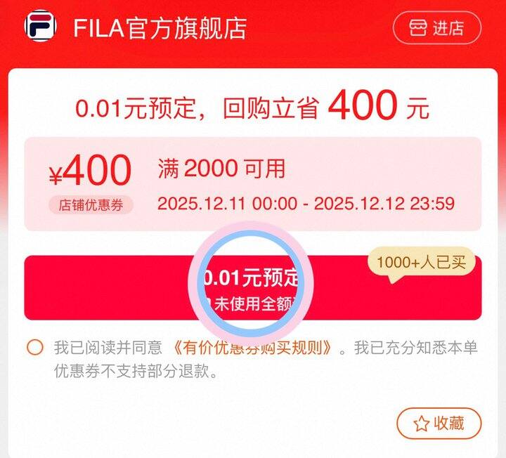 ❷0.01💰夠买斐乐2000-400圈