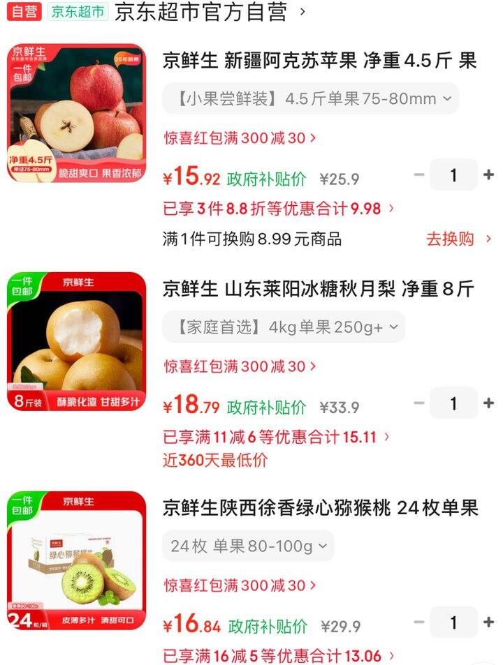 ❶ 京鲜生 新疆阿克苏苹果 净重4.5斤 果径75-80mm
