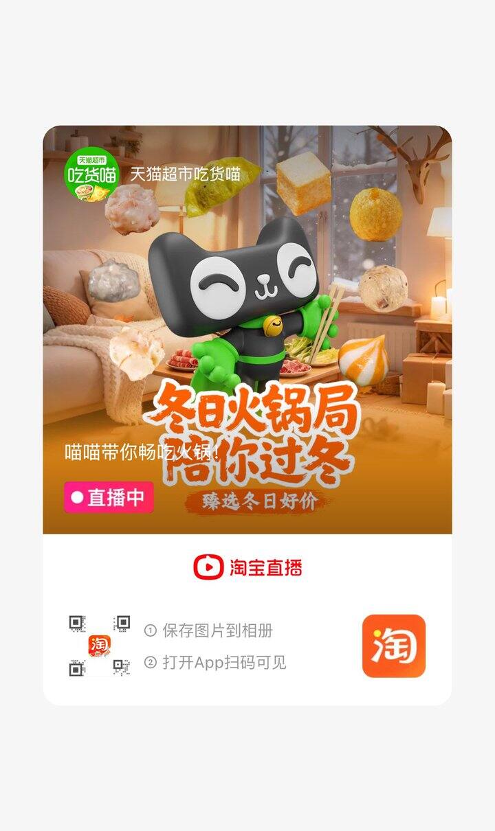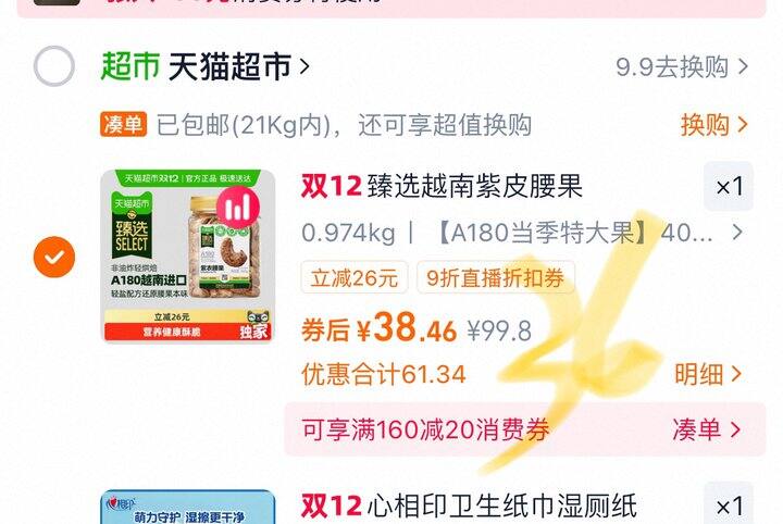 再到“天猫超市吃货喵”直播间领9折券,下单1件