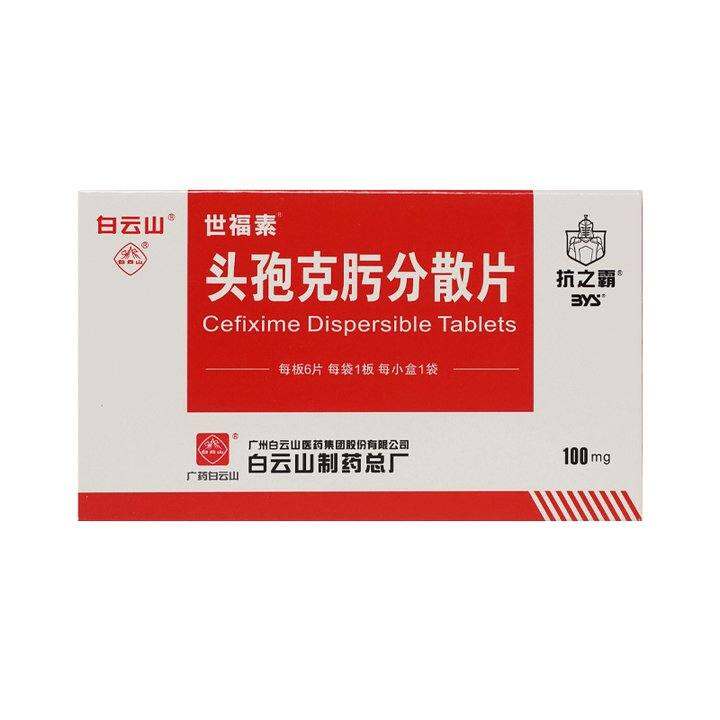头孢克肟分散片100mg*6片白云山世福素头孢克肟分散片0.1g*6片/盒白云山头孢克肟分散片副鼻窦炎敏感流感杆菌变形杆菌感染继发感染