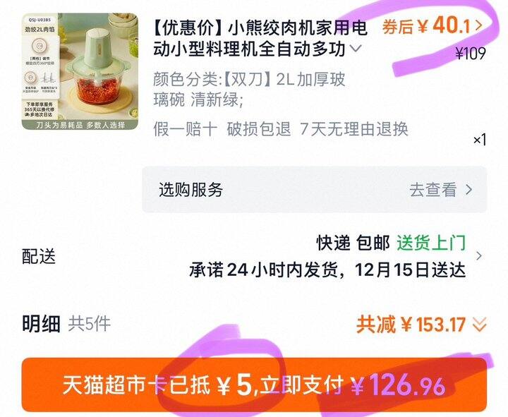 2️⃣小熊绞肉机 全自动多功能,领链接内2.59礼金https://m.tb.cn/h.7XXvUCq ,1Fu😊zhi1$uedGftg7miM$:// CZ6144,打開/。然后进入商品页面,商品价格下领199-20券,再点击商品主图上的悬浮标“直播中”进入zbj,停留一会儿会弹9折券,接着在页面点击右下角购物袋🛍️,加购1件原价109的,再去淘金币-我的足迹,找到商品加购1件,淘金币可抵7.97r。最后回到购物车把商品数量改为1件