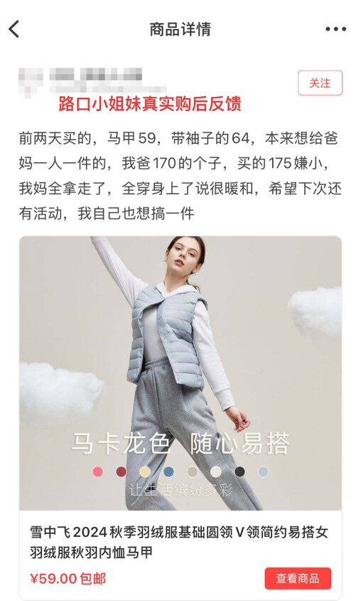 雪中飞 2025冬新款女士圆领排骨羽绒背心马甲