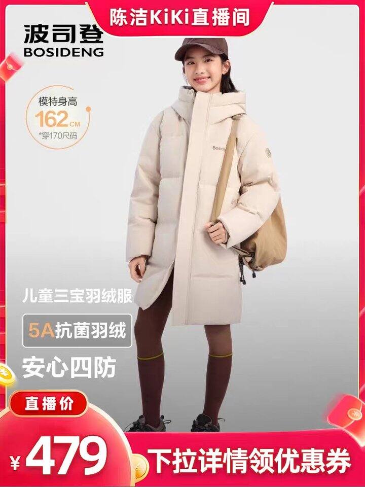 ③波司登儿童中长款羽绒服,下拉详情页【K姐直播福利】,进陈洁KiKi直播间弹85折直播优惠