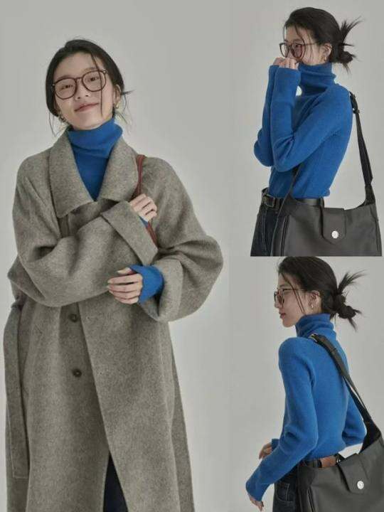 克莱因蓝高领针织毛衣女秋冬叠穿长袖修身显瘦内搭打底衫洋气上衣