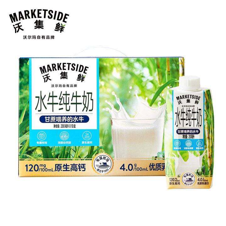 沃尔玛高钙水牛奶200mlx10瓶整箱纯牛奶4.0乳蛋白生牛乳营养早餐