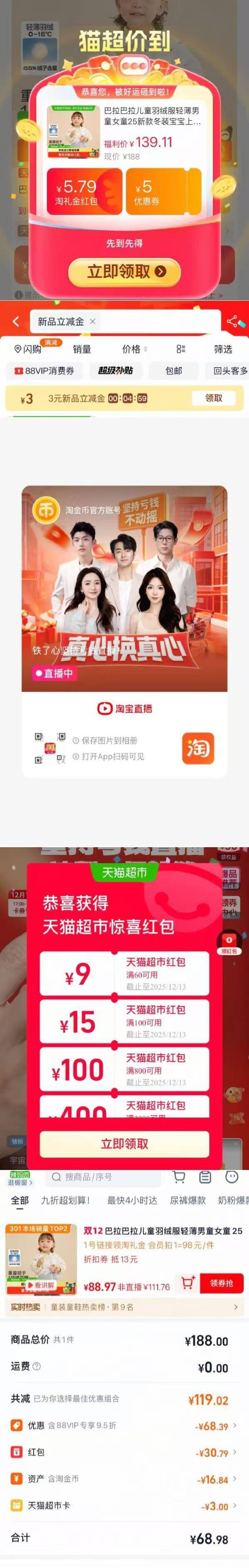③详情页进入辣妈团直波间,搜这个商品加购,弹9折券