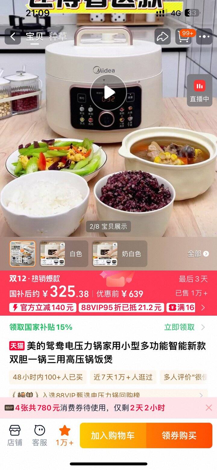 当时我多多360左右买的目前国补325左右!服了😭这个鸳鸯锅设计贼好,可以一锅出(汤、饭、菜)还可以吃火锅、蒸馒头(我自己配个蒸笼),总之很适合1.2人!质量很okk!