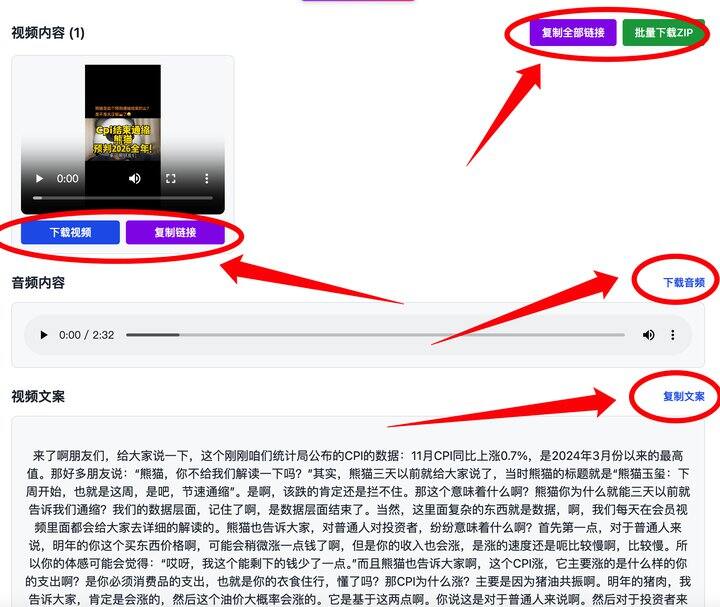 随便测试一个短视频链接提取结果是这样。