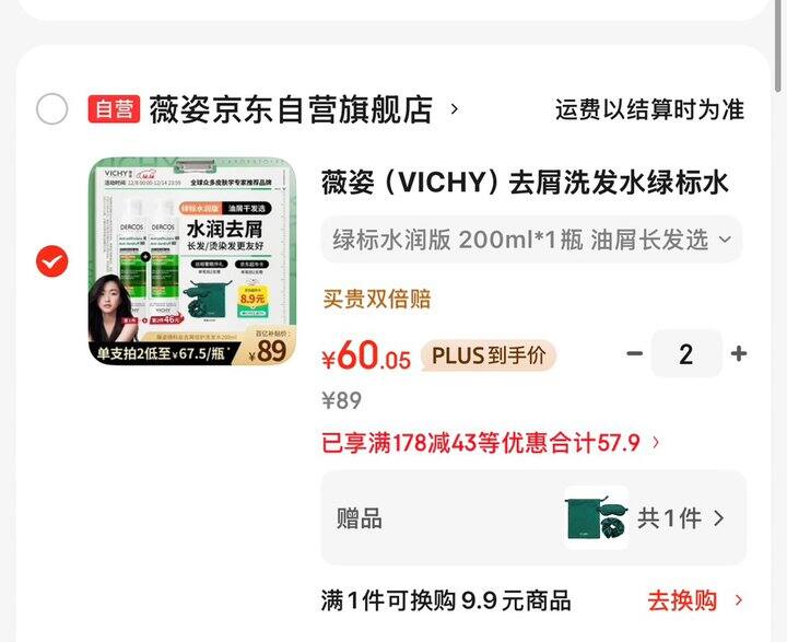 薇姿洗发水50+/瓶,清洁膏40+瓶,