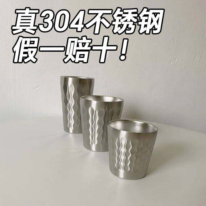 【真304食品级】韩式不锈钢水杯子菱格双层咖啡茶杯露营冷饮啤酒