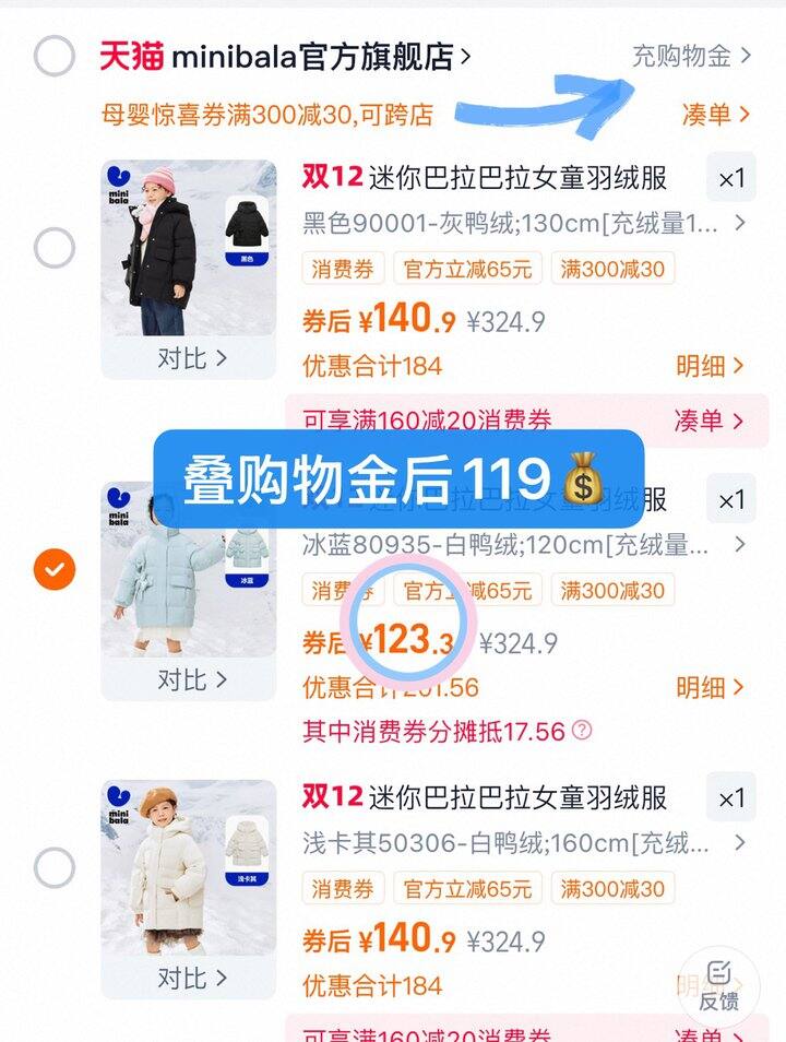 巴拉巴拉的羽绒服收到了,量很足,宽松款的
