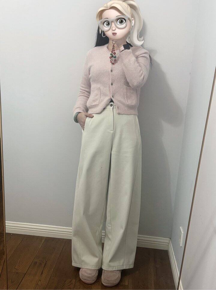 气温骤降,羽绒服安排上。配条白色弯刀裤,简简单单,怎么舒服怎么穿。