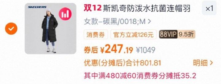 淘金币加购抵扣,vip凑460-80消费券后 247.19